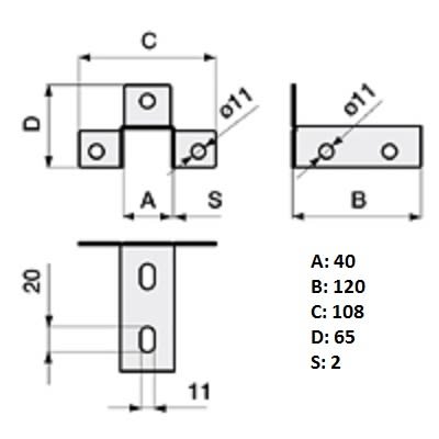 STEEL LINE CMS: SS3LS ATTAC. SOFF. 3 ALI SP.2MM, Piastra di supporto per profilo / profilato