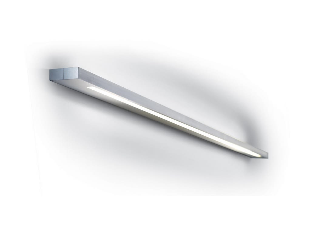 Apparecchio a parete a luce indiretta per sorgenti LED. Corpo in alluminio estruso anodizzato. Tappi laterali in policarbonato. Schermo superiore di protezione in policarbonato trasparente. Schermo diffusore inferiore in policarbonato estruso rigato opalino. Alimentazione elettronica integrata per le versioni a LED. Lampada: LED 25W 3000K.