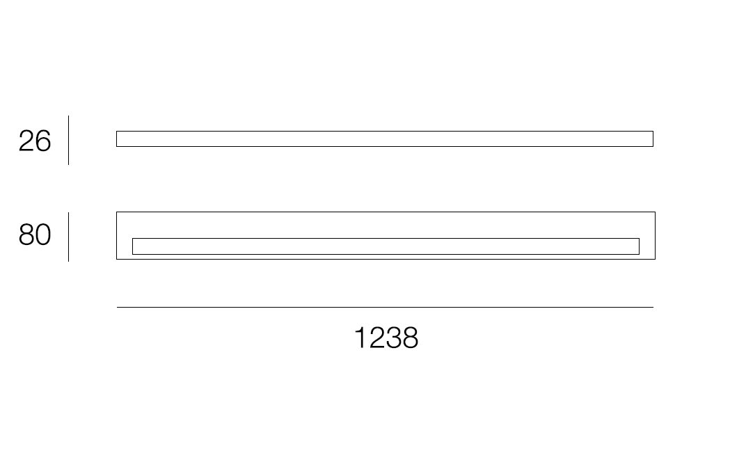 Apparecchio a parete a luce diretta/ indiretta per sorgenti LED. Corpo in alluminio estruso anodizzato. Tappi laterali in policarbonato. Schermo superiore di protezione in policarbonato trasparente. Schermo diffusore inferiore in policarbonato estruso rigato opalino. Alimentazione elettronica integrata per le versioni a LED.