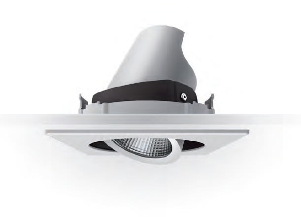 Proiettore orientabile ad incasso per sorgenti LED. Corpo del proiettore e anello esterno in pressofusione di alluminio verniciato. Anello interno in policarbonato. Sistema Gimbal per orientabilità del corpo ottico di 30° sul piano verticale e di 355° sul piano orizzontale. LED Chip on Board alta efficienza Ra84, Ra97. Ottica di precisione a sfaccettature convesse in policarbonatometallizzato ad alta specularità. Trattamento “Scratch Proof Formula” antigraffio. Sistema di aggancio “no tools” per controsoffitti da 0,5 a 30 mm. Versioni senza cornice solo per installazioni singole. Versioni con cornice accessoria per installazioni singole emultiottica. Alimentazione elettronica inclusa. Colore: bianco gesso. Lampada: LED 33W 4000K RA84 WFL 59°.