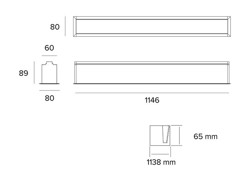 Apparecchio lineare LED stand-alone da incasso con flangia. 24W. 3000K. 3480 lm. L=1146 mm.