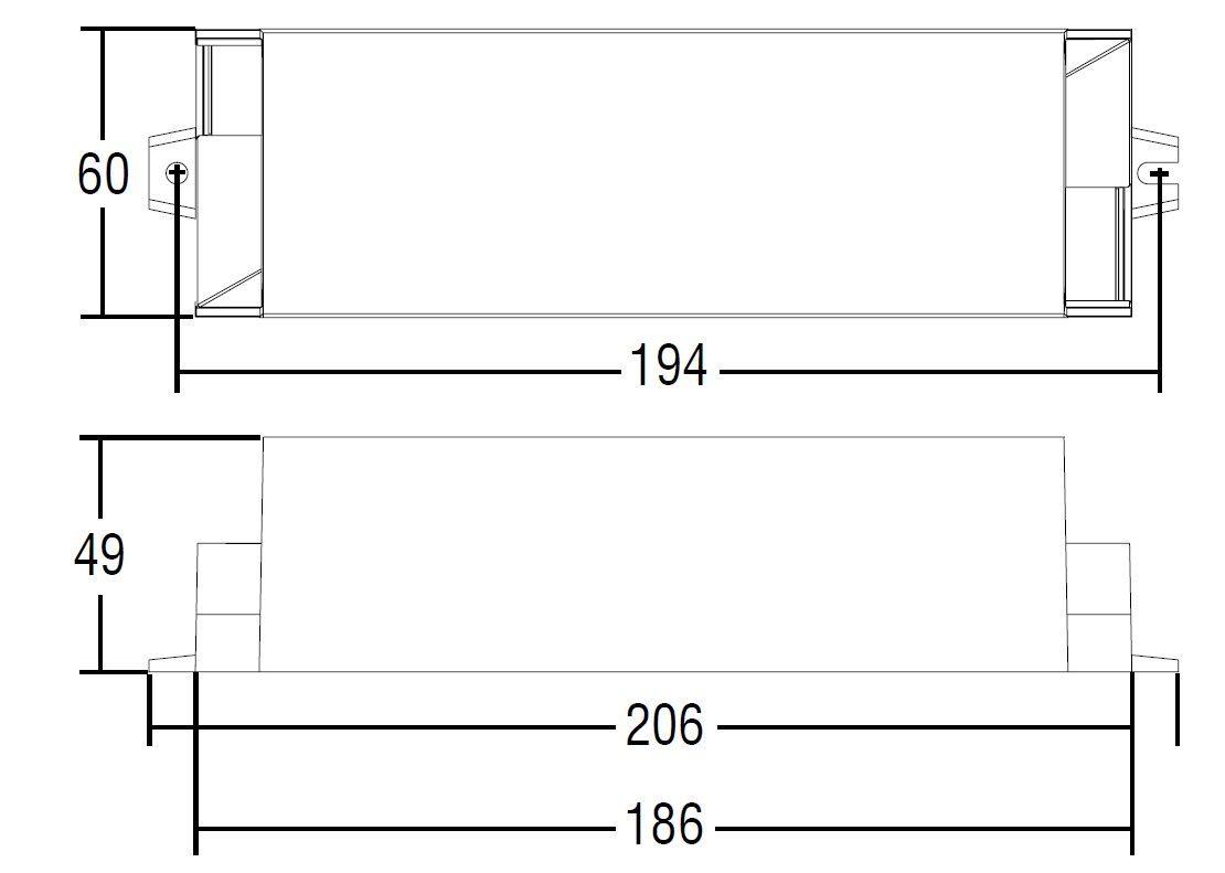 Alimentatore elettronico tipo AC/DC con uscita in tensione specifico per installazionicon Norme settore illuminazione. Alimentatore da incorporare. Utilizzabile perapparecchi di illuminazione in classe di protezione I.Morsetti di entrata e uscita contrapposti. Singola morsettiera su primario (sezionecavo fino a 0,5 - 2,5 mm2 / AWG20 - AWG13). Doppia morsettiera su secondario(sezione morsetto 0,5 - 2,5 mm2 / AWG20 - AWG13).Protezioni: termica e cortocircuito; contro le extra-tensioni di rete; contro isovraccarichi