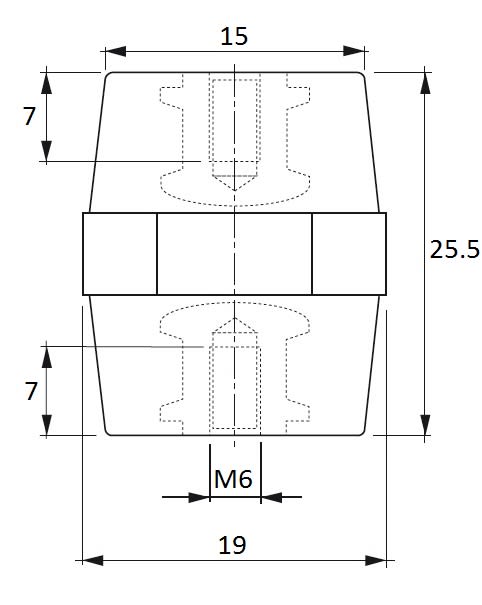 ISOLATORI E PORTASBARRE Altezza: 25,5 Tipo: Esagonale Inserto: M6