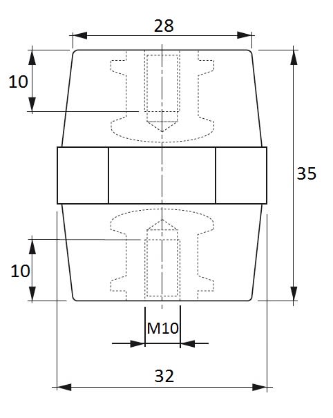 ISOLATORI E PORTASBARRE Altezza: 35 Tipo: Esagonale Inserto: M10