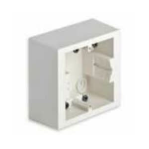 Scatola da parete quadrata, profondità 43,5 mm, per installazione di 1modulo o 2 moduli ridotti Idea e di 2 moduli Eikon e Plana mediante irelativi supporti e placche, bianco. Serie Idea: adatta per solaplacca Classica