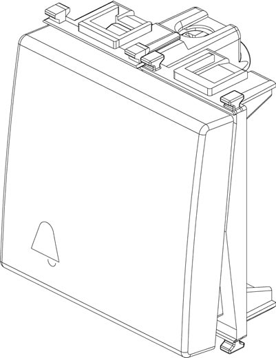 Pulsante 1P NO 10 A, simbolo campanello illuminabile, tasto sostituibile - 2 moduli.