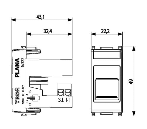 VIMAR S.P.A. - VIW14322 PRESA RJ11 6/4 CON PORTELLO BIANCO - 14322