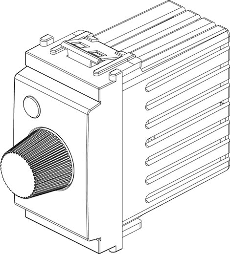 Regolatore 230 V~ 50-60 Hz per: lampade ad incandescenza 100-500 W, comando con deviatore push-push e regolazione con potenziometro rotativo, individuazione al buio, bianco