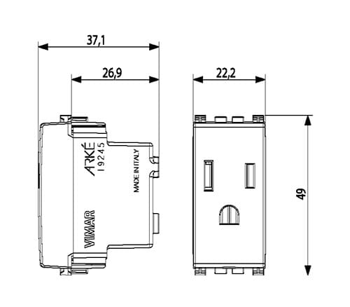 VIMAR S.P.A. - VIW19245 PRESA 2P+T 15A USA+SASO GRIGIO - 19245