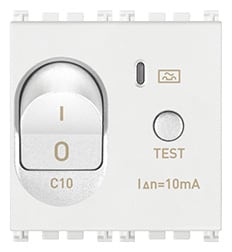 Interruttore automatico magnetotermico differenziale 1P+N C 10, alimentazione 120-230 V~ 50-60 Hz I∆n 10 mA, p.i. 3000 A - 2 moduli. Bianco.