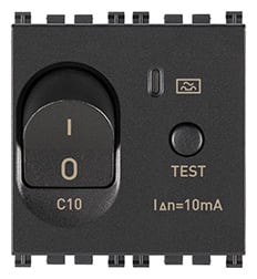 Interruttore automatico magnetotermico differenziale 1P+N C 10, alimentazione 120-230 V~ 50-60 Hz I∆n 10 mA, p.i. 3000 A - 2 moduli. Grigio.