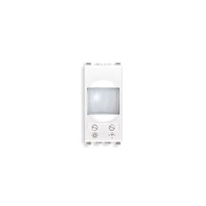 Interruttore con sensore di presenza ad infrarossi per accensione luci, soglia del sensore crepuscolare e ciclo di temporizzazione regolabili, uscita a relè NO 6 A 230 V~, alimentazione 230 V~ 50-60 Hz, bianco