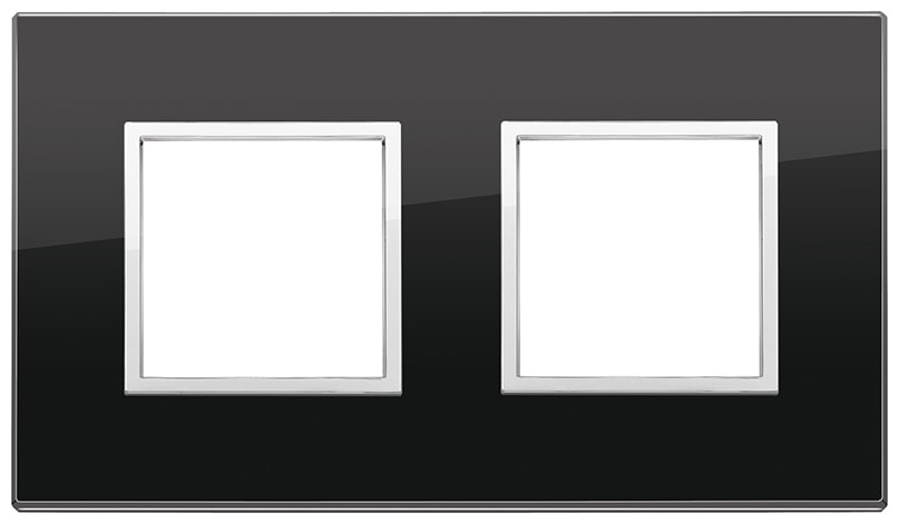 Placca 4 moduli (2+2 interasse 71 mm), cristallo, nero diamante.