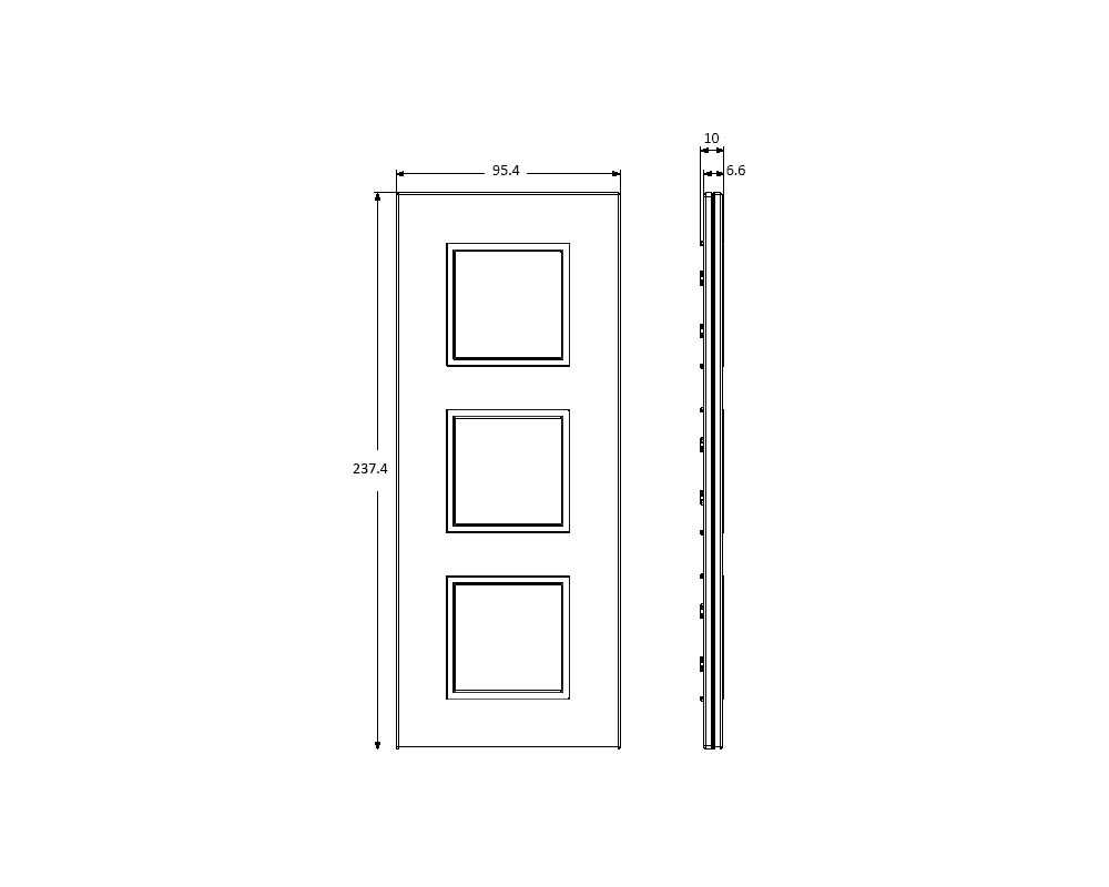 Placca 6 moduli (2+2+2 interasse 71 mm), alluminio, titanio