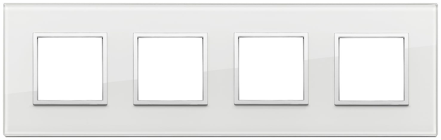 Placca 8 moduli (2+2+2+2 interasse 71 mm), cristallo, bianco diamante