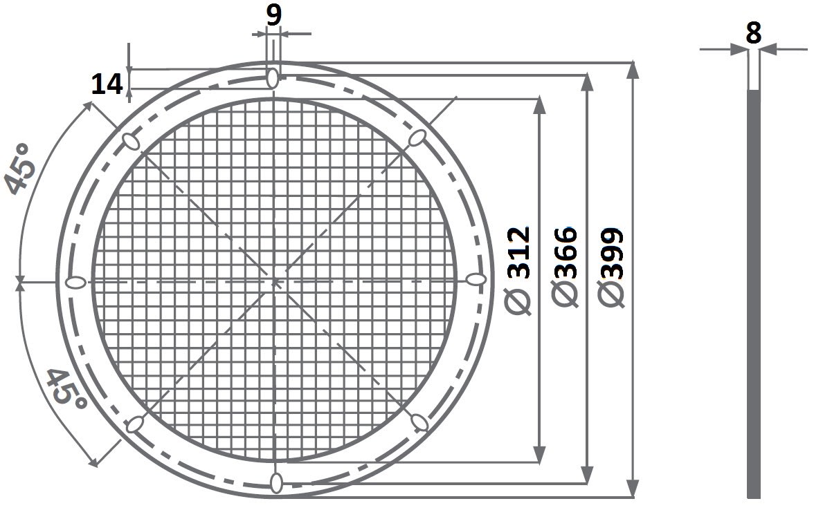 Da applicare al prodotto sul lato di aspirazione per proteggere le parti in movimento nel caso l’apparecchio sia installato in posizione accessibile (NORMA EN 294)