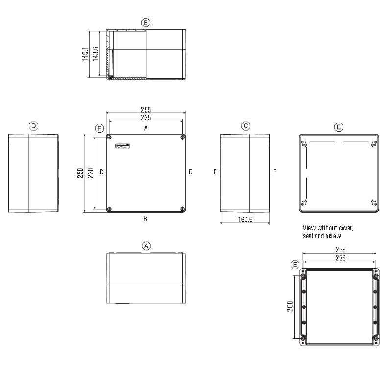 Custodia in plastica per dispositivi elettrici, elettromeccanici e pneumatici, oltre che per circuiti stampati. Adatta all'uso in ambienti difficili a livello meccanico e chimico. Il montaggio a muro può essere realizzato utilizzando fori di montaggio o piedini di montaggio.