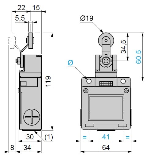 Il finecorsa Schneider Electric OsiSense XCKM in formato "classico"ha una leva con rotella in termoplastica e un corpo in Zamak. Dispone di 1 contatto NA + 1 contatto NC a scatto e pressacavo multiplo Pg 11. Questo finecorsa è dotato di un corpo Zamak robusto, 3 ingressi cavi, un design modulare che agevola la manutenzione e un formato "classico". Grazie alla resistenza agli urti IP66 e IK05, è l'ideale per l'utilizzo in condizioni difficili. È fissato sulla macchina tramite il suo corpo e ha una durata elettrica tipica di 5 milioni di cicli nella categoria di utilizzo DC-13 ed è conforme alle norme CCC, EN/IEC 60947.-5-1, CSA C22-2 N.14, EN/IEC 60204-1, UL 508, BV.
