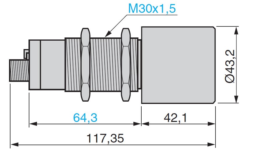 Interruttore ad ultrasuoni. Osisonic®, Universale Cilindrico, corpo in plastica,Alimentazione in corrente continua, uscita statica.
