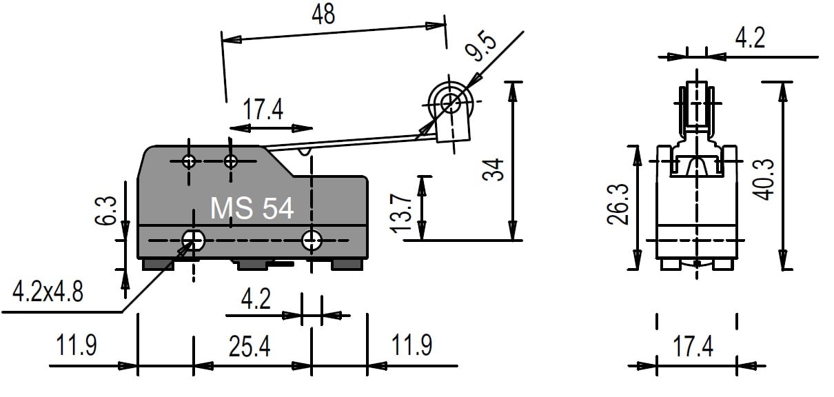 PIZZATO ELETTRICA S. - PZZMS 54 MICROINTERRUTTORE A LEVA CON ROTELLA